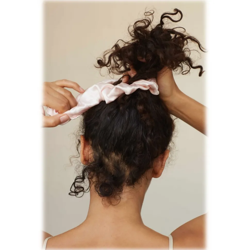 Our silk scrunchies have a very flexible elastic so it’s easy to pull up your hair into a ponytail or bun.