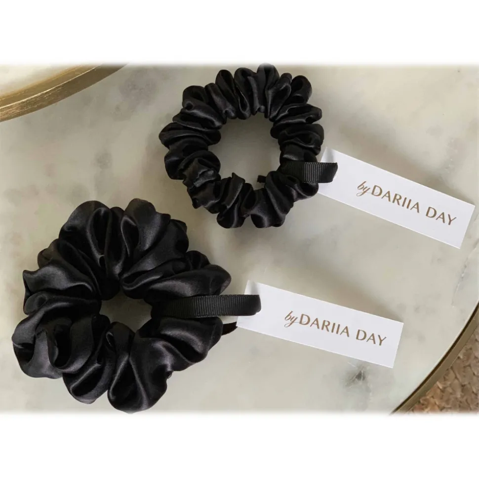 by Dariia Day – Silk Scrunchie – Midnight Black – Fashion – Accessories – Mulberry Silk – Artisan Silk Scrunchie – Luxury