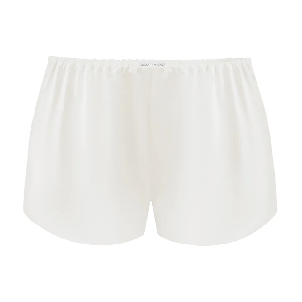 by Dariia Day – Silk Shorts – Powder White – Fashion – New Collection – Mulberry Silk – Artisan Silk Shorts – Luxury