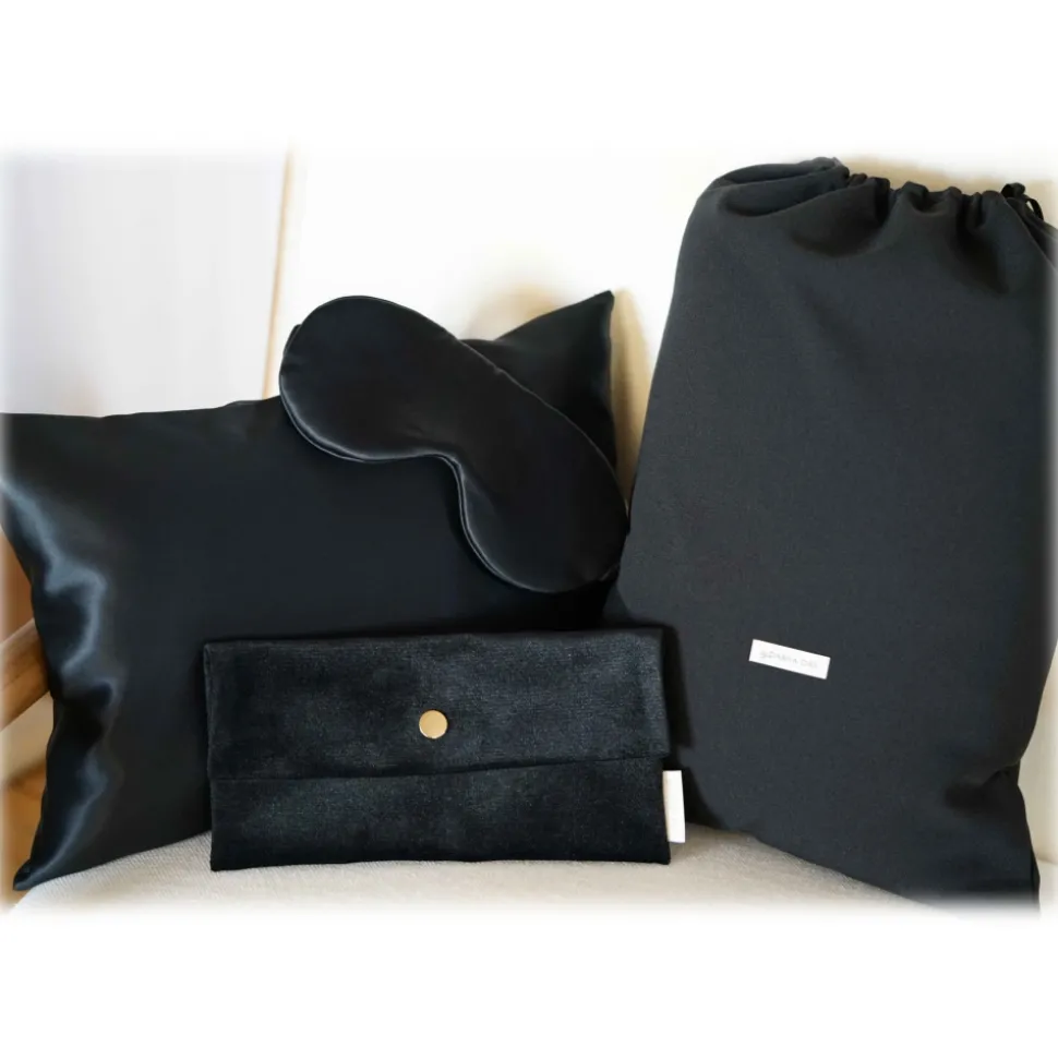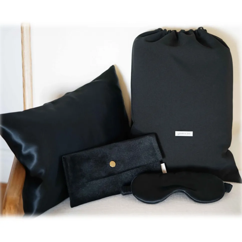 by Dariia Day – Silk Travel Set – Midnight Black – Fashion – New Collection – Mulberry Silk – Artisan Silk Travel Set – Luxury