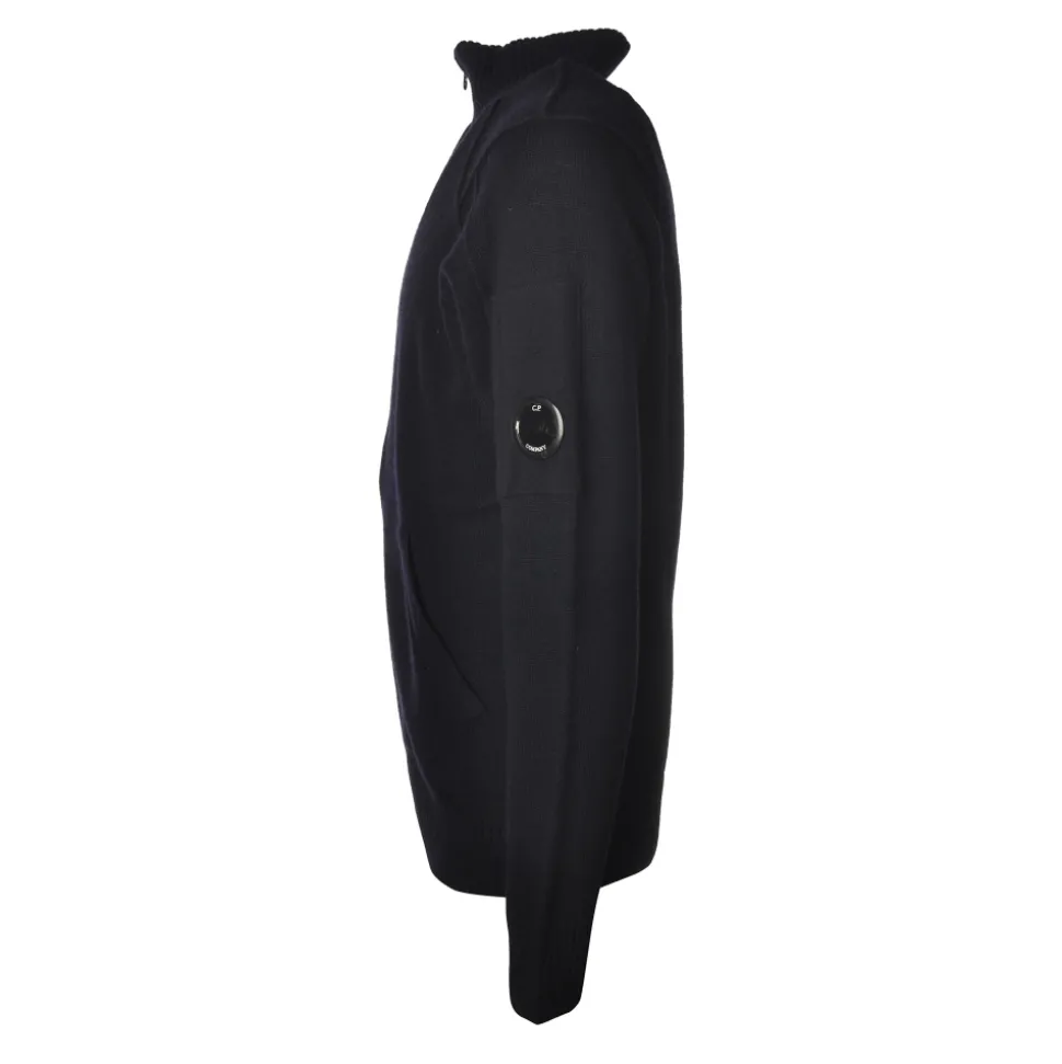 Cardigan sweater with front zip closure, raglan shoulder with embossed profile details and pocket on left sleeve with logo, C.P. Company.