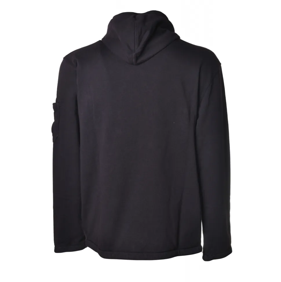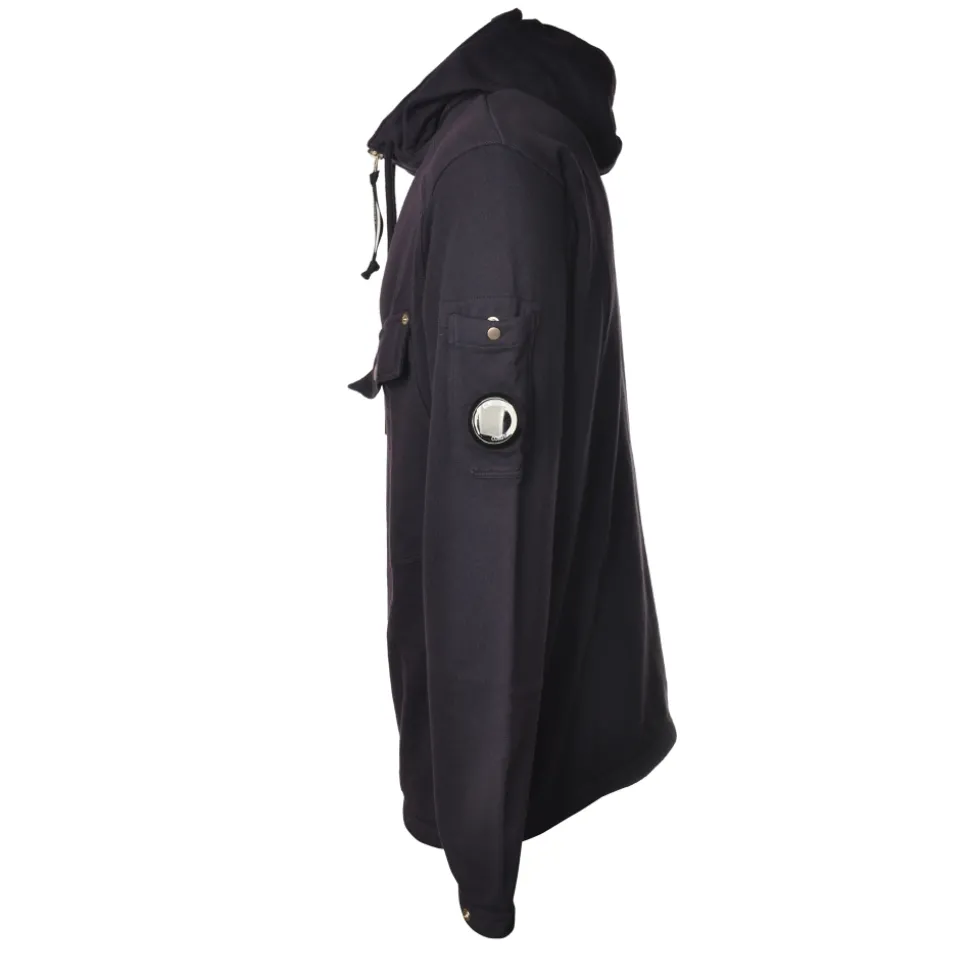Sweatshirt with silver zip with hood, large pockets on the front, over fit with logo portholes on the left sleeve, C.P. Company.