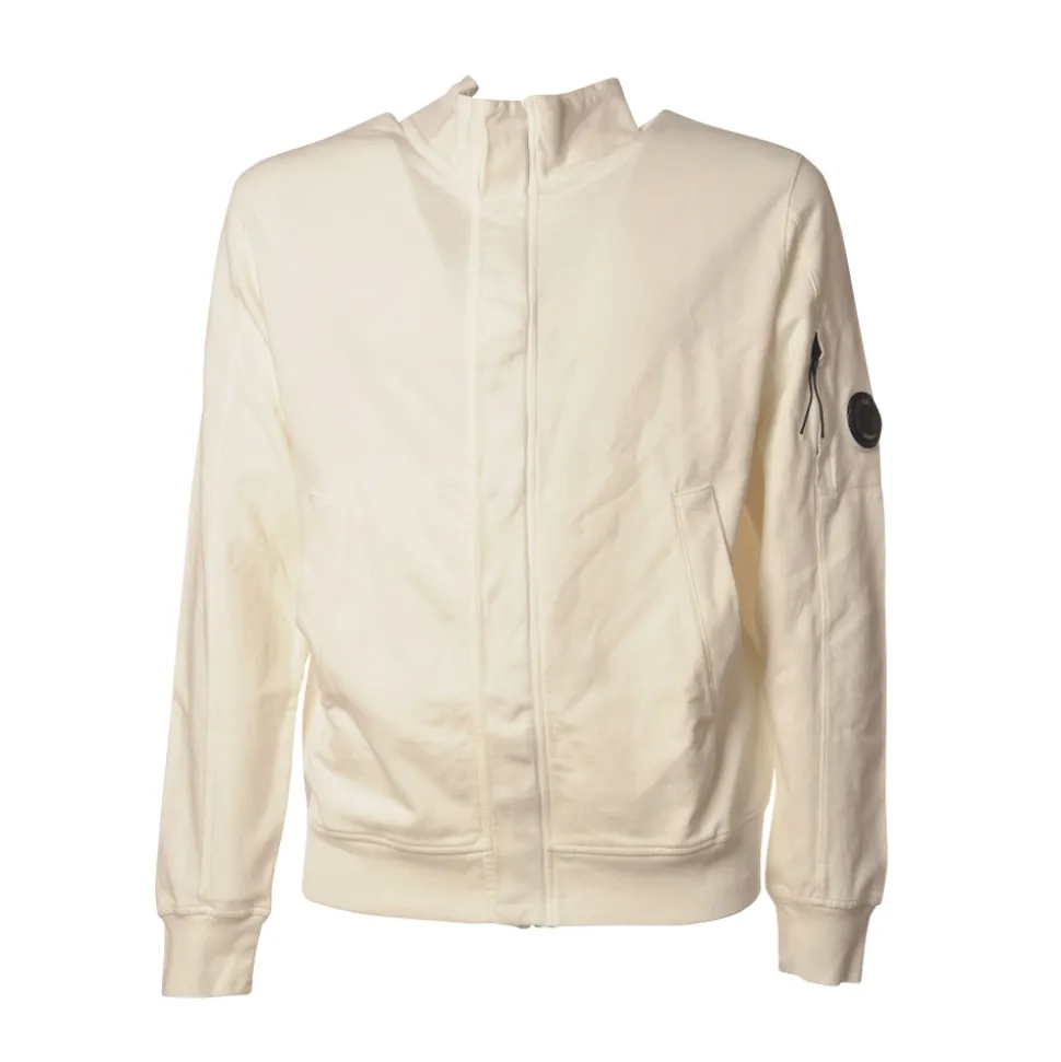 C.P. Company – Sweatshirt with Front Zip Closure and Snap Buttons – Cream – Luxury Exclusive Collection