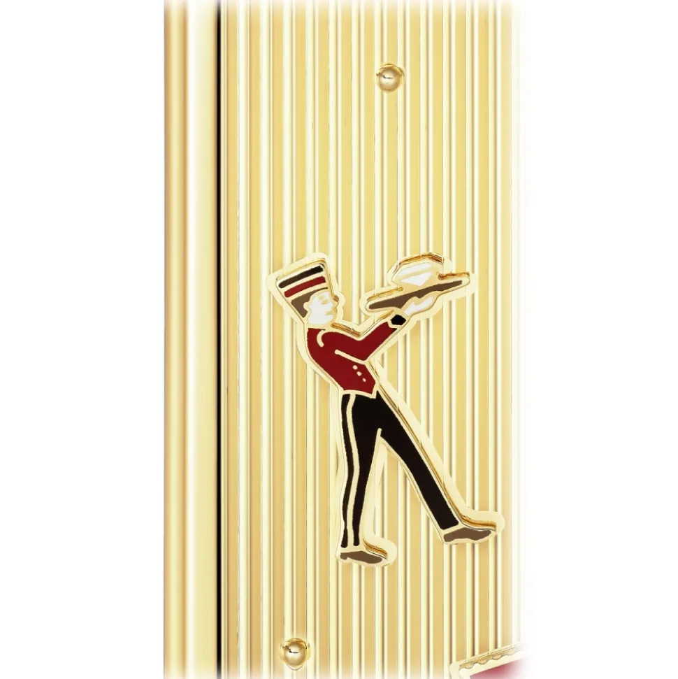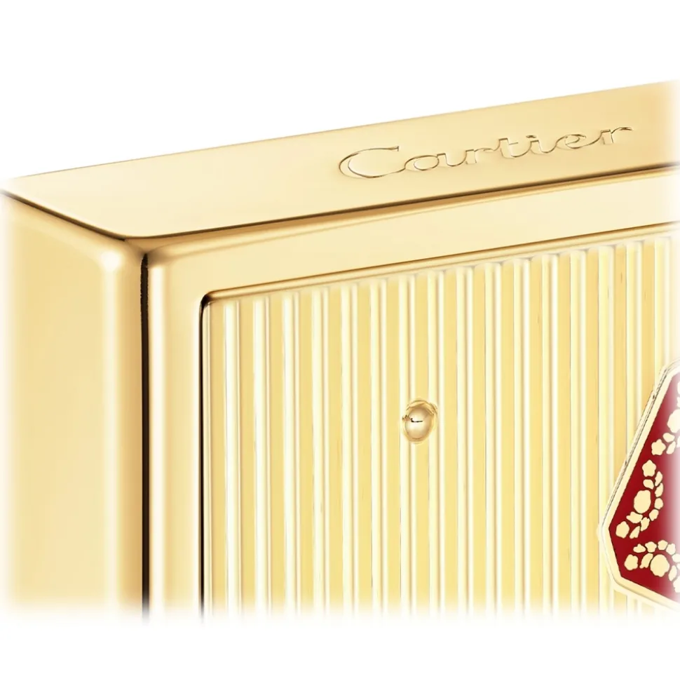 A limited edition Nécessaire à Parfum, adorned with a panther, a bellboy and a red box, emblems of Maison Cartier. To be combined with 30 ml glass refills, which slip into the case. Several fragrances are available among our collections.