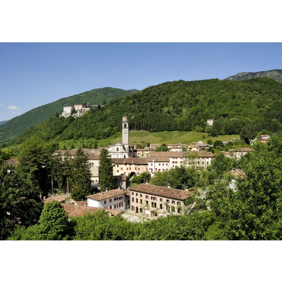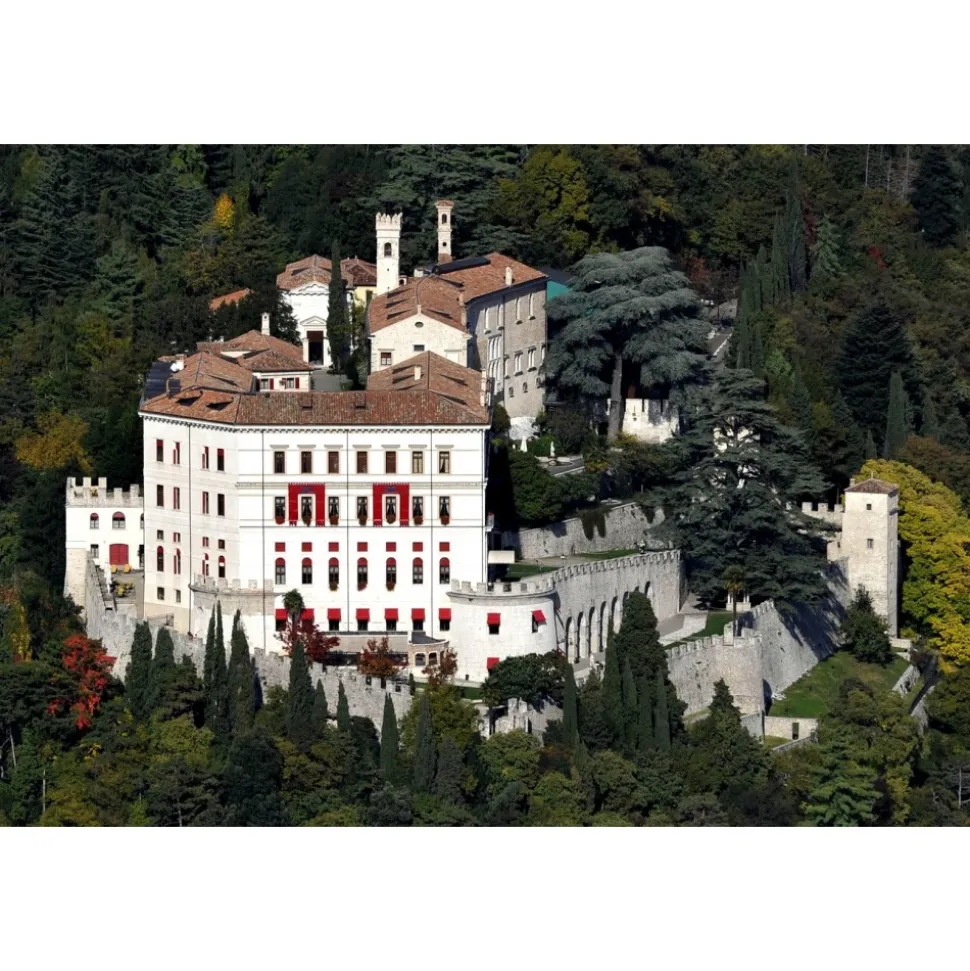 Set on a promontory overlooking Valmareno, with a mild climate typical of the Treviso hills, CastelBrando is a splendid example of the historical and artistic restoration of one of the largest castles in Europe. CastelBrando is in the medieval village of Cison Valmarino, in the heart of the hills of the Prosecco Veneto, between Venice and the Dolomites.