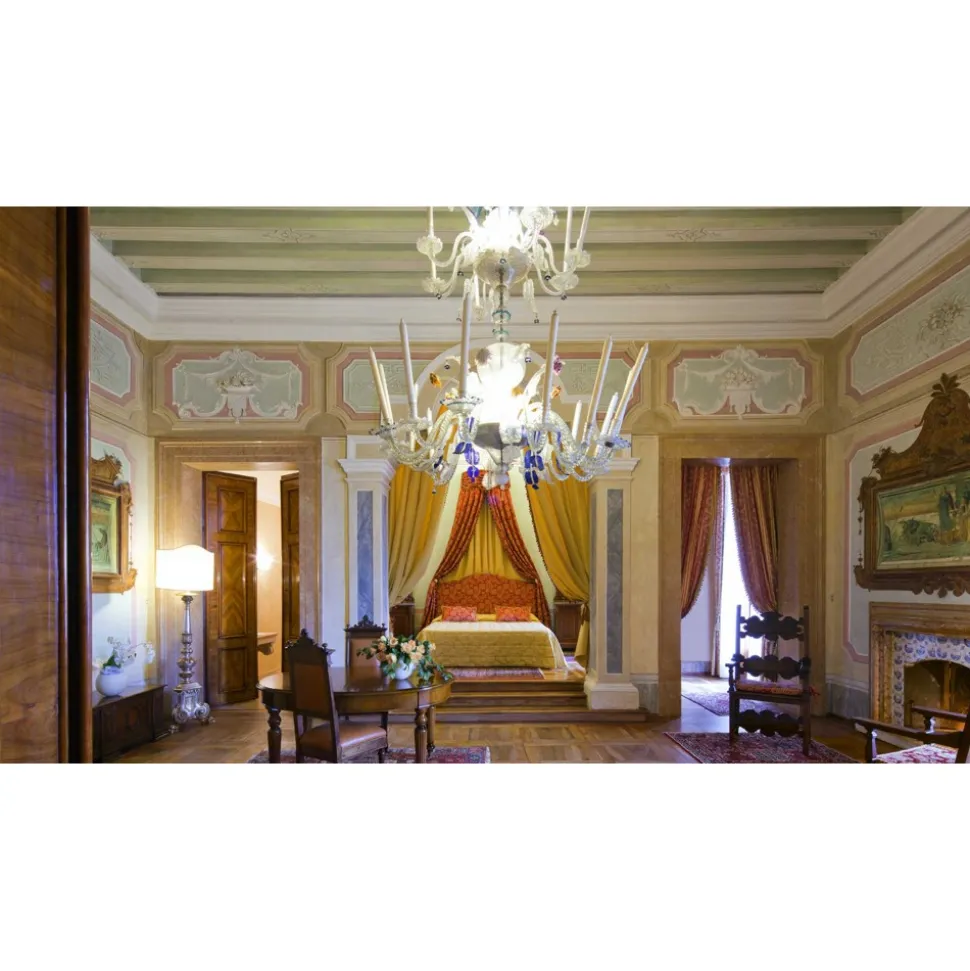 The castle, one of the largest and oldest in Europe, is surrounded by a beautiful park with a hotel with 80 elegant rooms, suites and apartments located in three different settings, a Spa & Beauty Farm, a sophisticated restaurant, a family pizza restaurant as well as pubs, wine cellars and wine bars.
