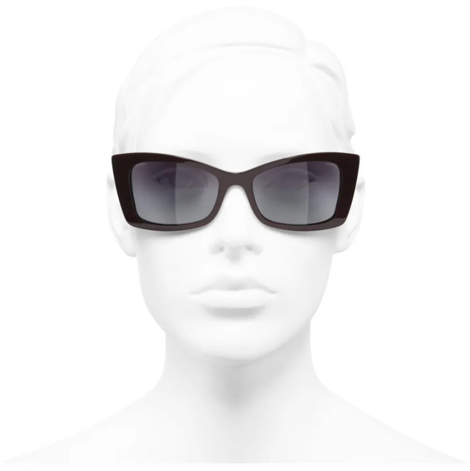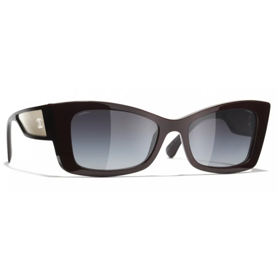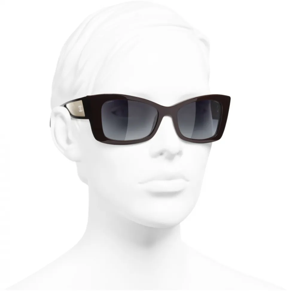 Chanel – Rectangle Sunglasses – Dark Red White Gold – Chanel Eyewear