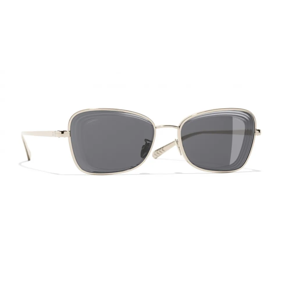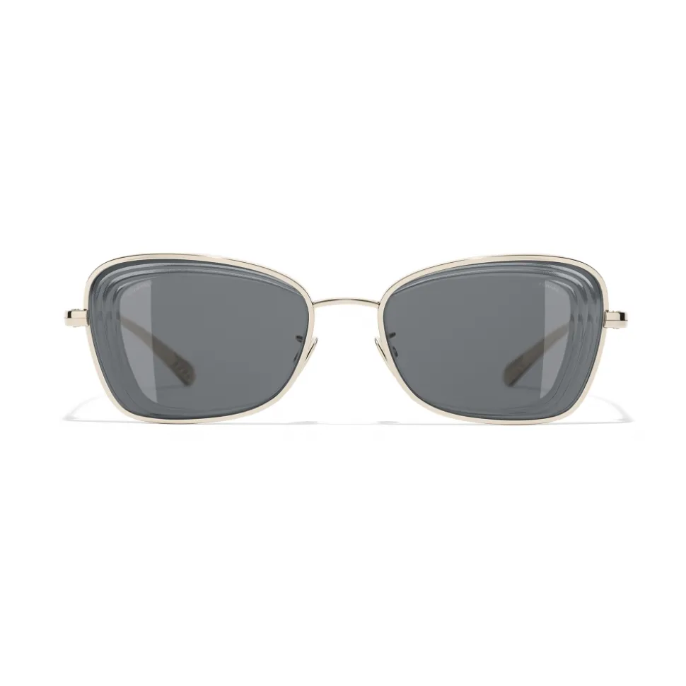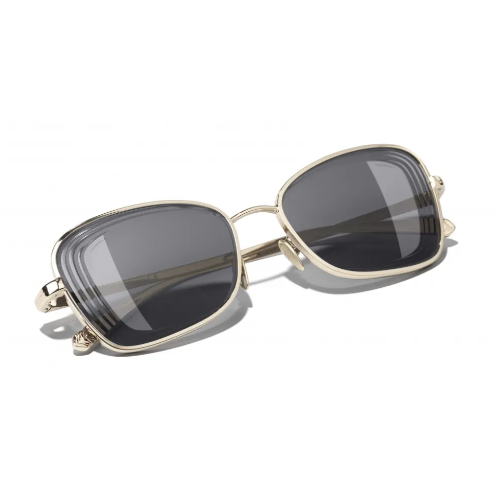 Chanel – Rectangle Sunglasses – Gold Gray – Chanel Eyewear