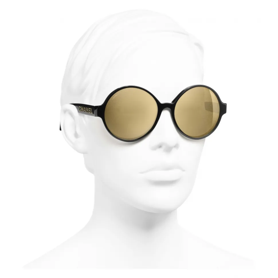 Chanel – Round Sunglasses – Black Gold Glitter – Chanel Eyewear