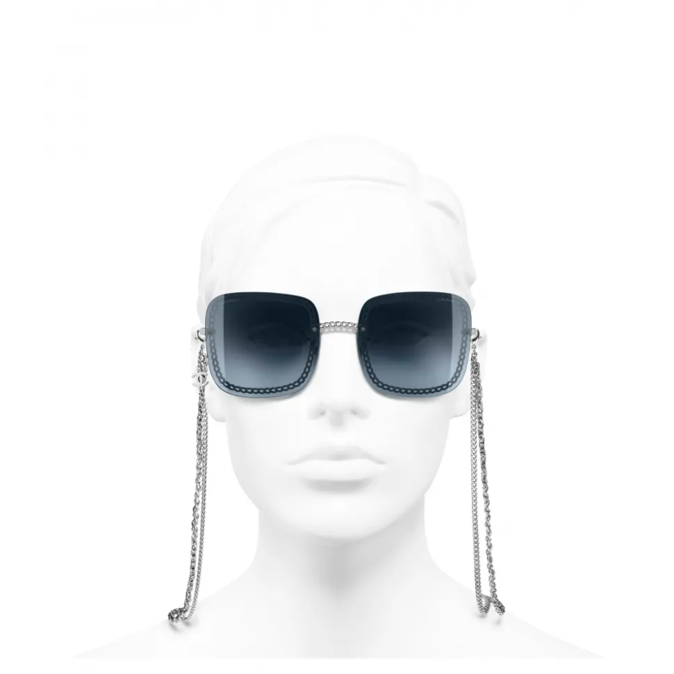 Chanel – Square Sunglasses – Silver Light Blue – Chanel Eyewear