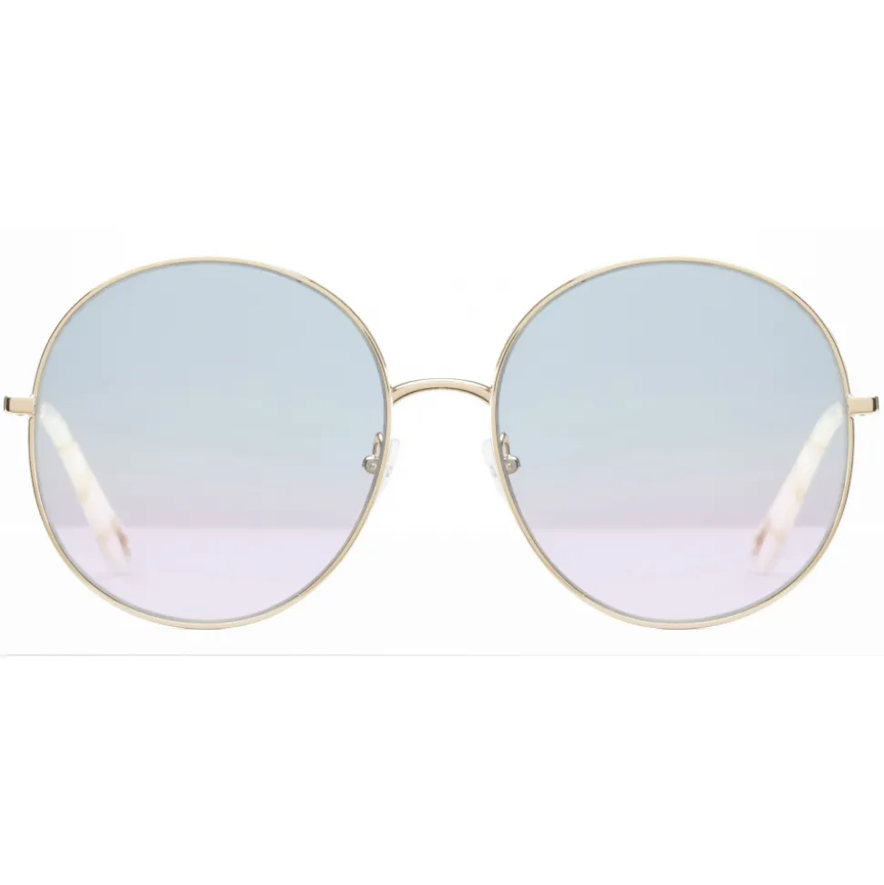 Eliz round sunglasses, easy to wear and characterized by an ultralight gold metal frame, give off a modern and casual charm.