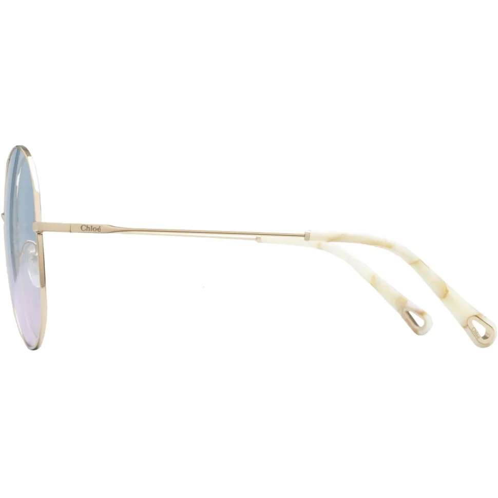 The iconic shaded palette of the Maison gives a touch of freshness to this model with an airy oversized round shape. The temple ends of these women’s sunglasses feature the characteristic Chloé drop-shaped opening, compatible with eyewear jewelry.