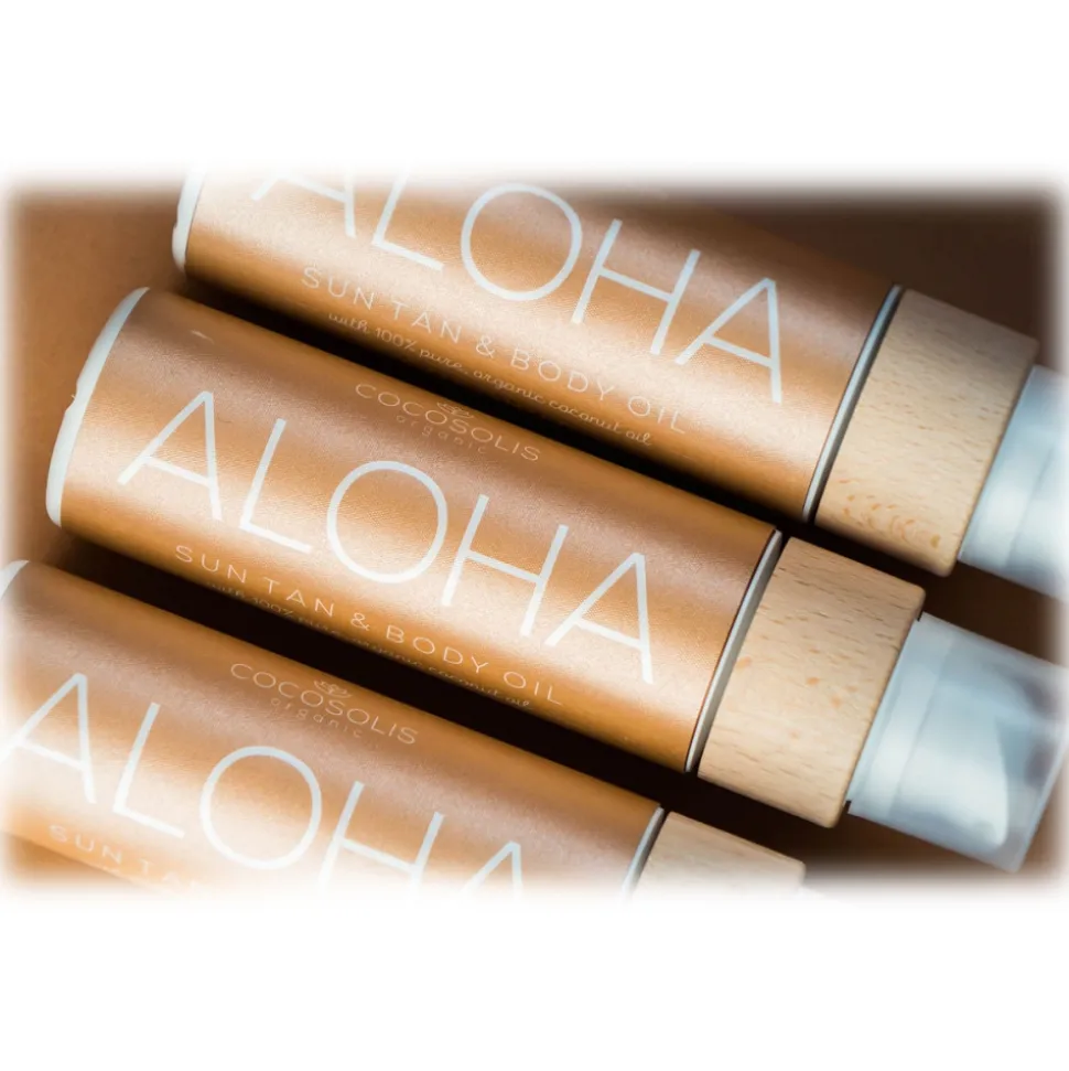 Cocosolis – Aloha – Sun Tan Body Oil – Organic Oil for a Chocolate Tan, and Hydrated, Radiant Skin – Professional Cosmetics