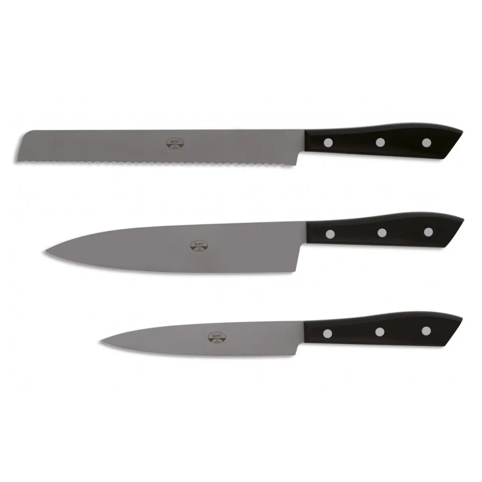Exclusive Berti 1895 Knives set. 3 knife blocks, plexiglass, laser cut blade. Whole tang, black.