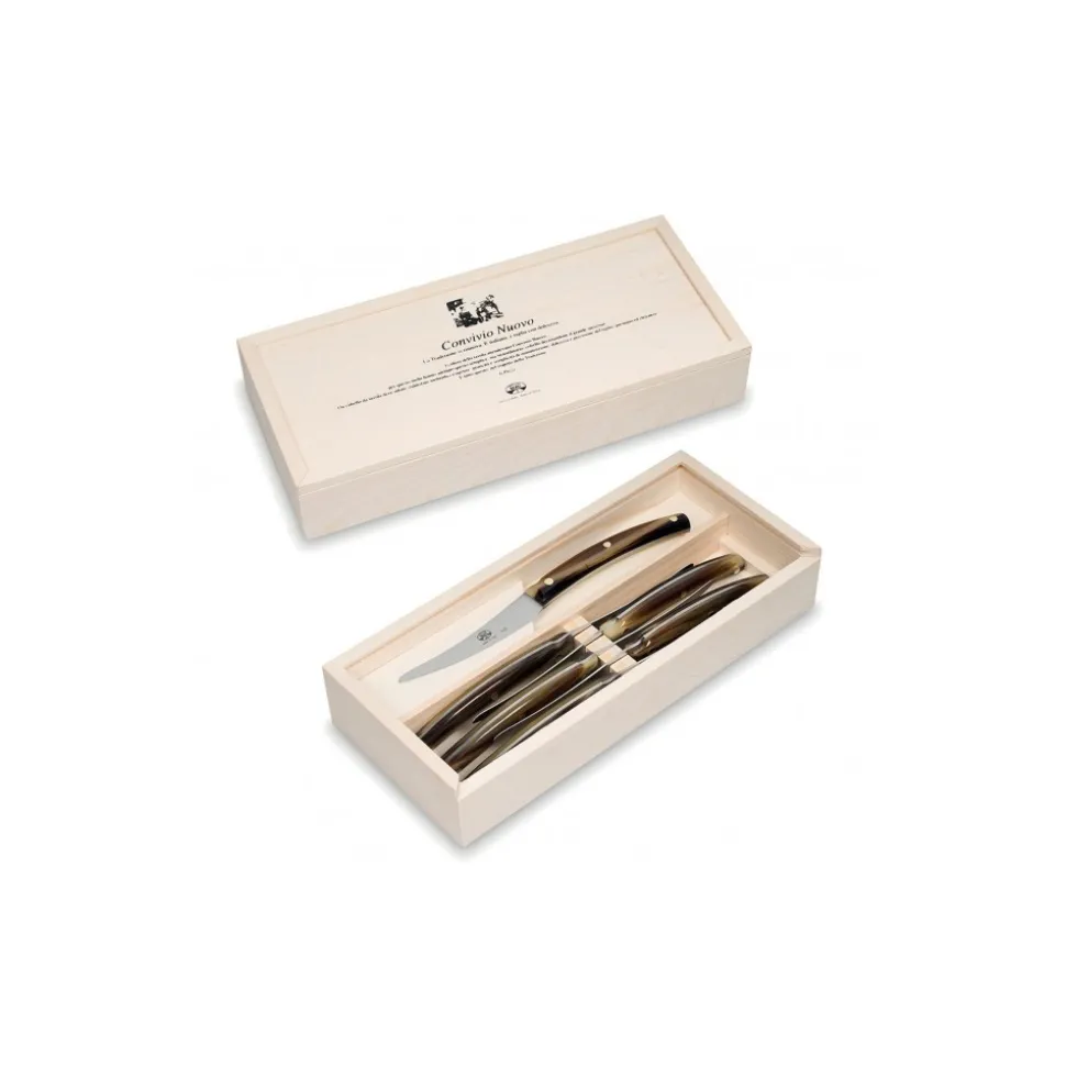 Exclusive Berti 1895 Cutlery set. Steak knives, cornotech, laser cut blade. Full tang, horn-like.
