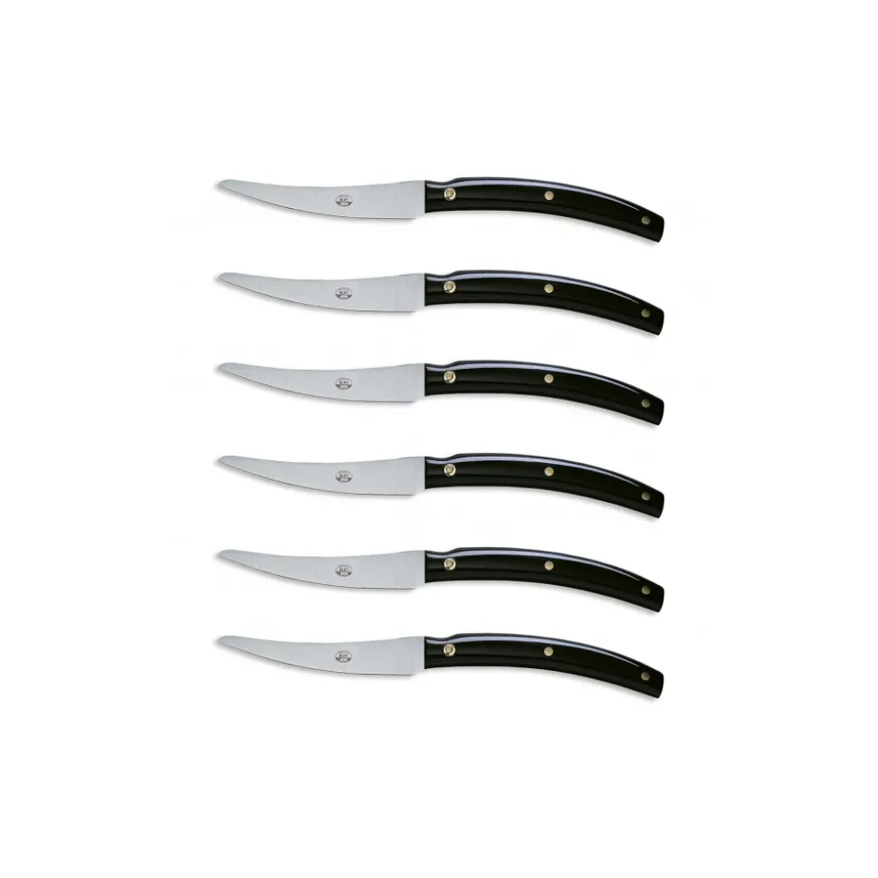 Exclusive Berti 1895 Cutlery set. Steak knives, plexiglass, laser cut blade. Whole tang, black.