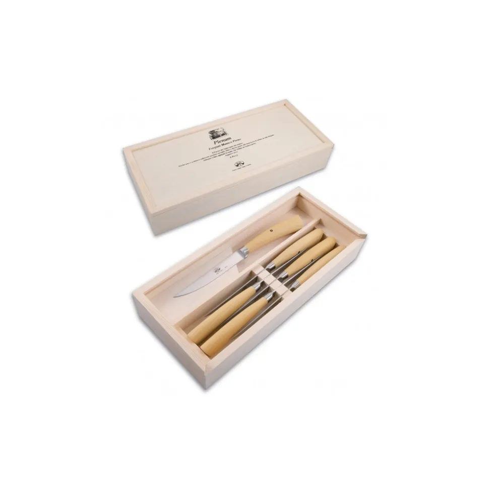 Exclusive set Coltellerie Berti 1895. Steak knives, boxwood, forged blade. Whole tang, cream.