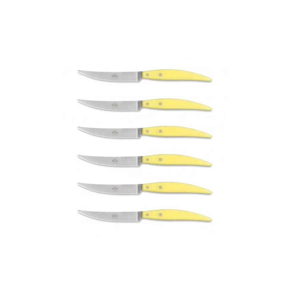 Exclusive Berti 1895 Cutlery set. Steak knives, plexiglass, laser cut blade. Half tang, yellow.