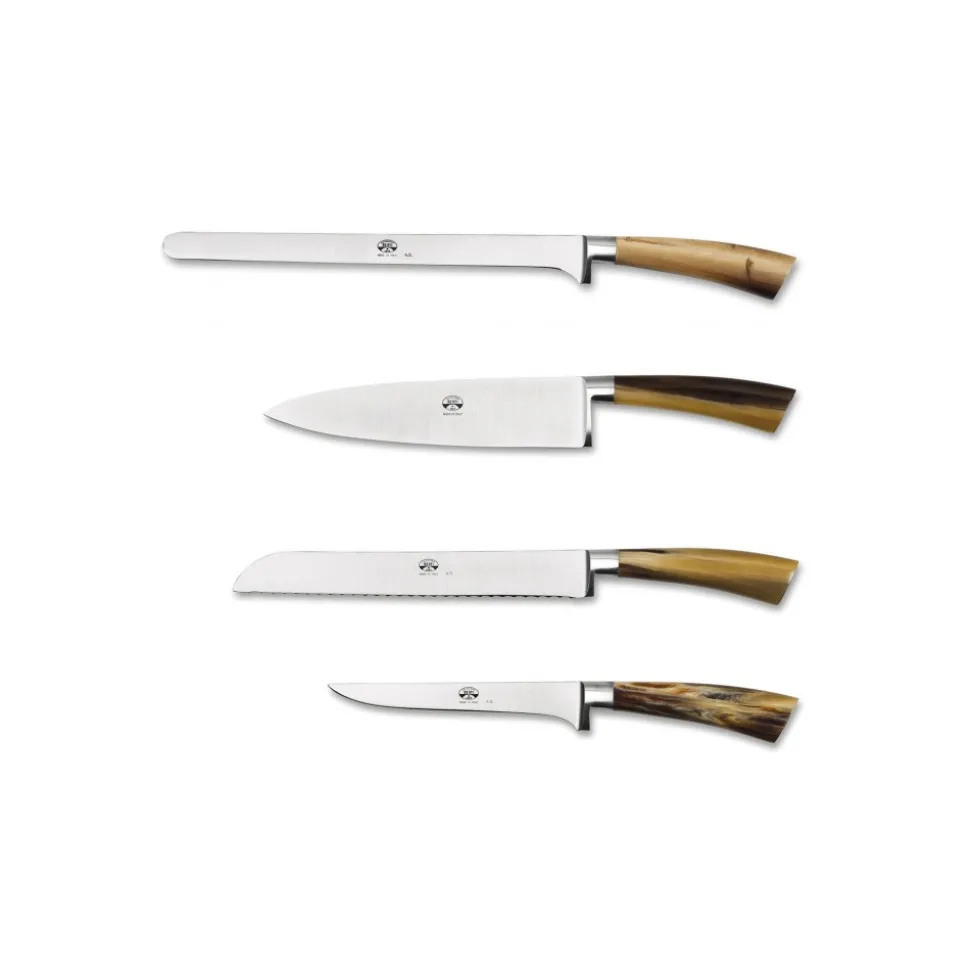 Exclusive Berti 1895 Cutlery Set. Preparation set, cornotech, forged blade. Full handle, horn-like.