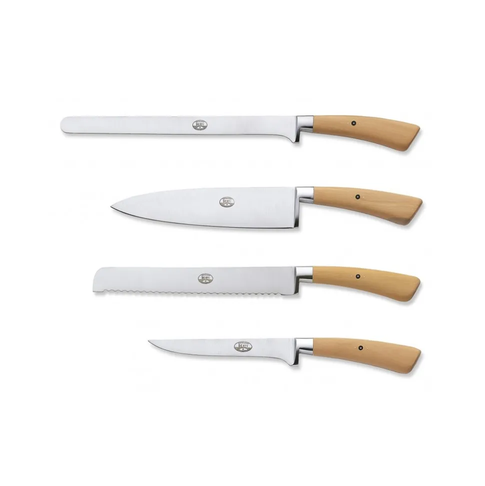 Exclusive Berti 1895 Cutlery Set. Preparation set, boxwood, forged blade. Full handle, cream.