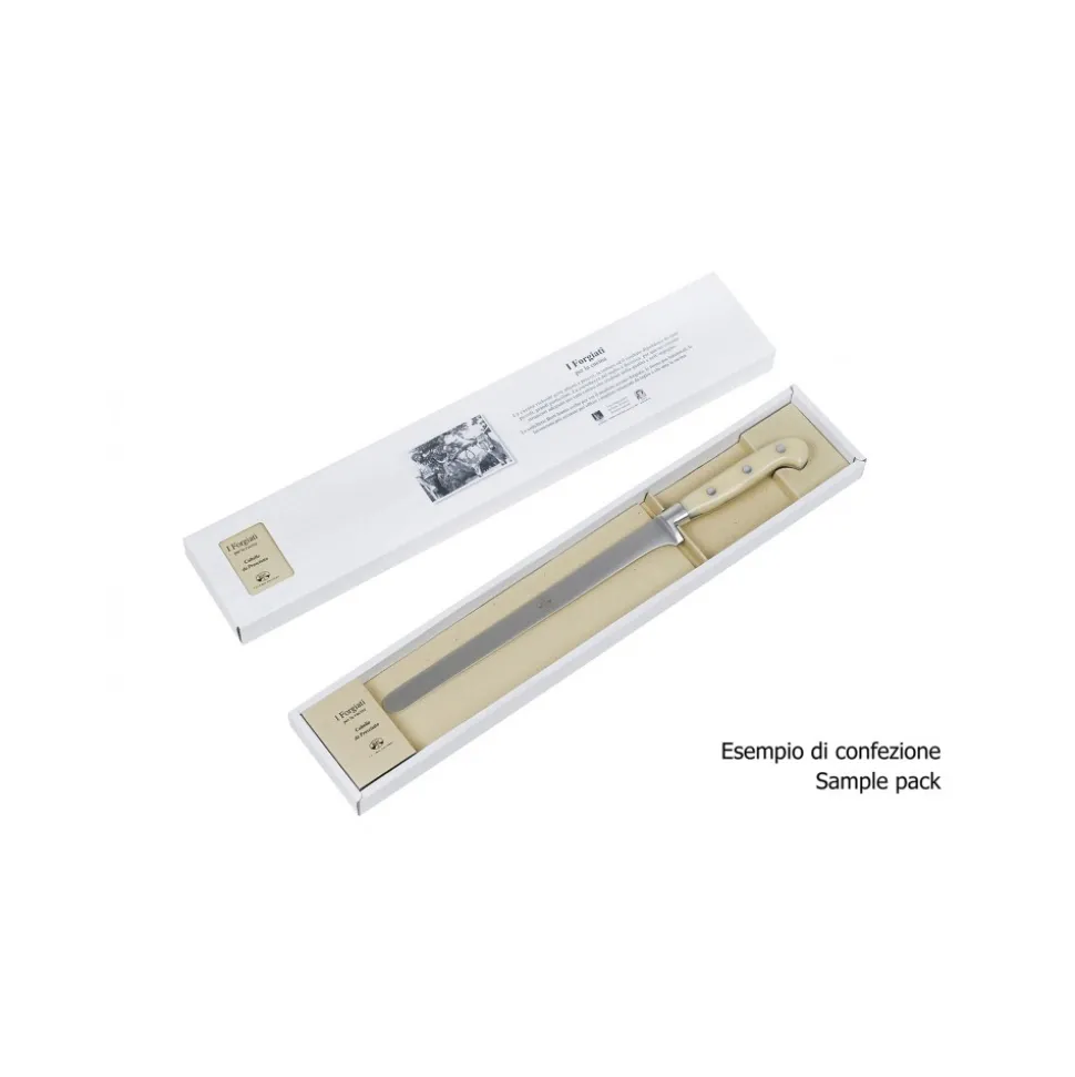 Exclusive Berti 1895 Knives set. Sharpener for knife maintenance, plexiglass, forged blade. Whole tang, cream.