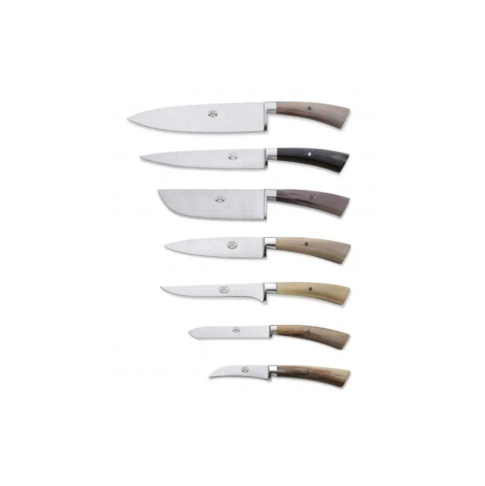 Exclusive Berti 1895 Cutlery Set. Preparation set, ox horn, forged blade. Full handle, horn.