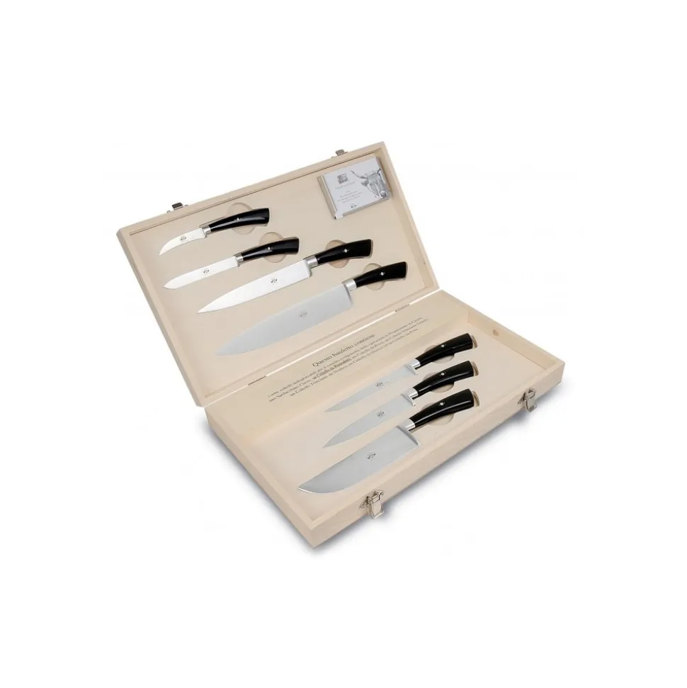 Exclusive Berti 1895 Cutlery Set. Preparation set, plexiglass, forged blade. Full handle, black.