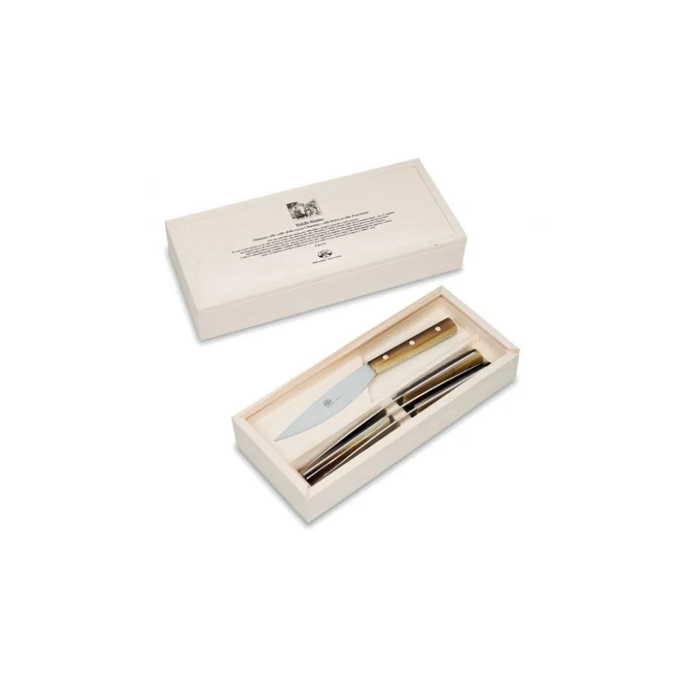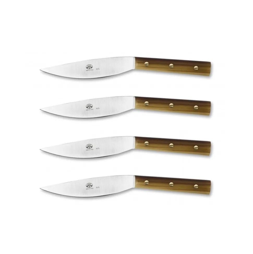 Exclusive Berti 1895 Cutlery set. Steak knives, cornotech, laser cut blade. Full tang, horn-like.