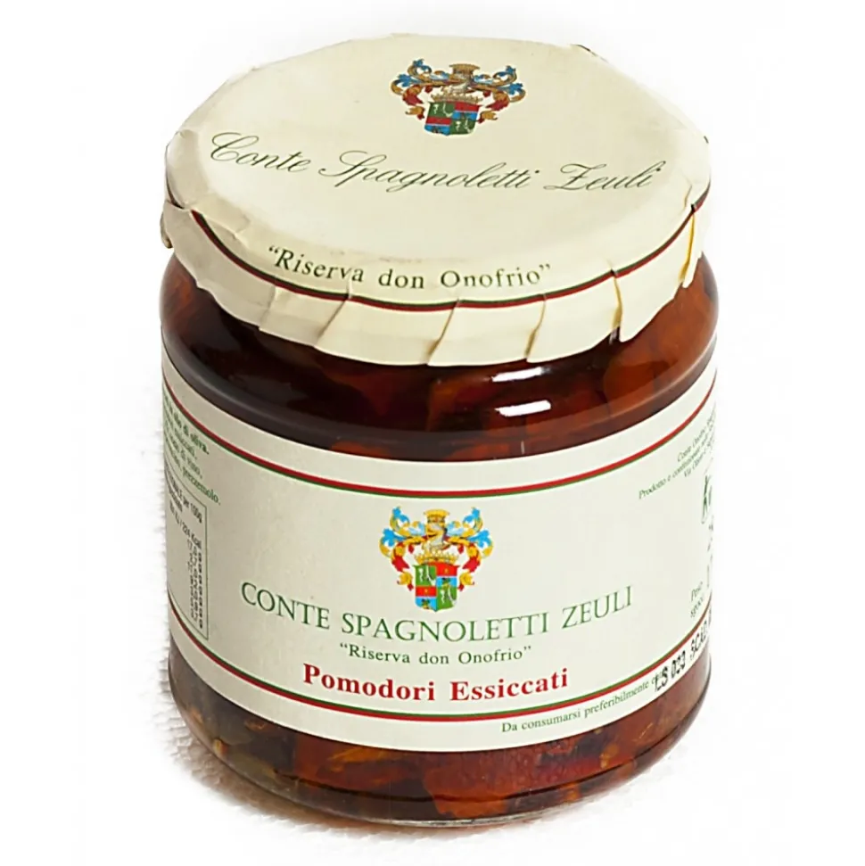 Ingredients: desiccated tomatos, olive oil, wine vinegar,cappers, salt, chili peppers, parsley.