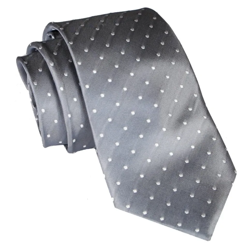 The box includes a silk tie of ice gray color, coordinated cuff-links, pocket square and a polished steel tie clip.