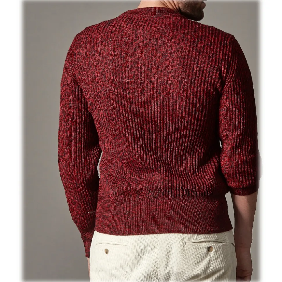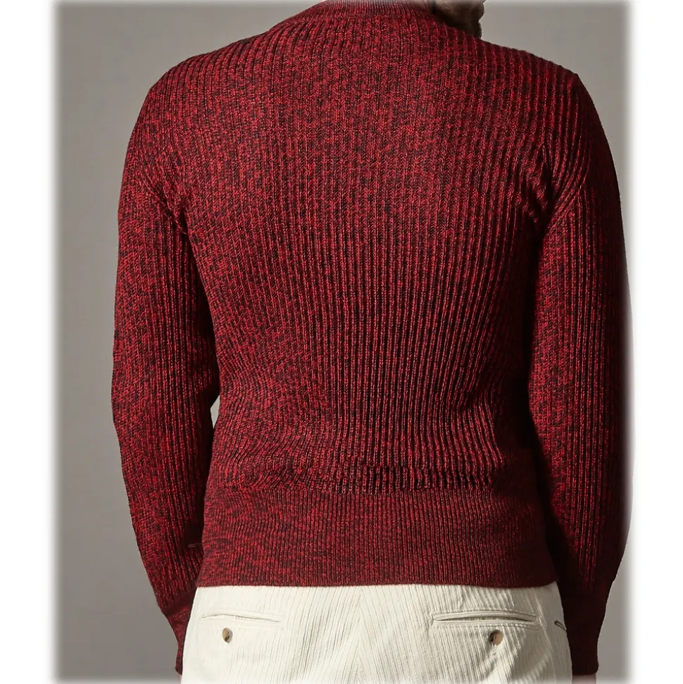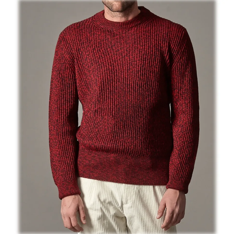 Cruna – Crewneck Sweater in Wool – 499 – Red – Handmade in Italy – Luxury High Quality Sweater