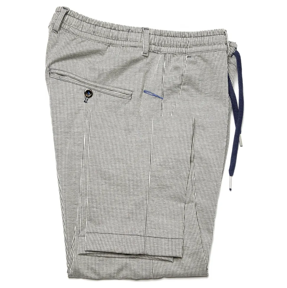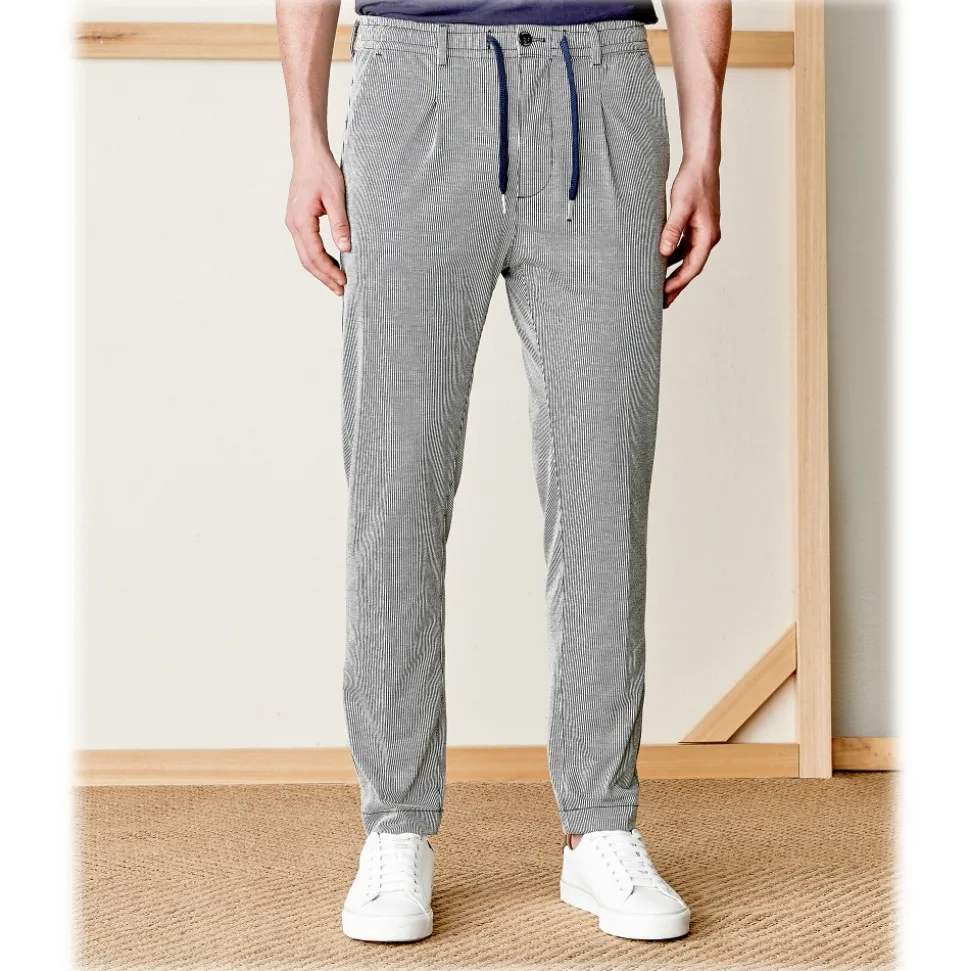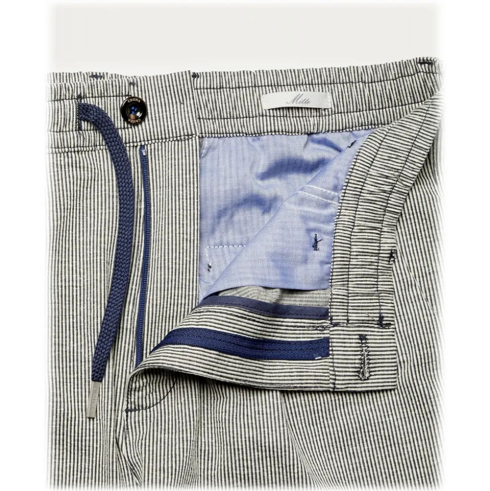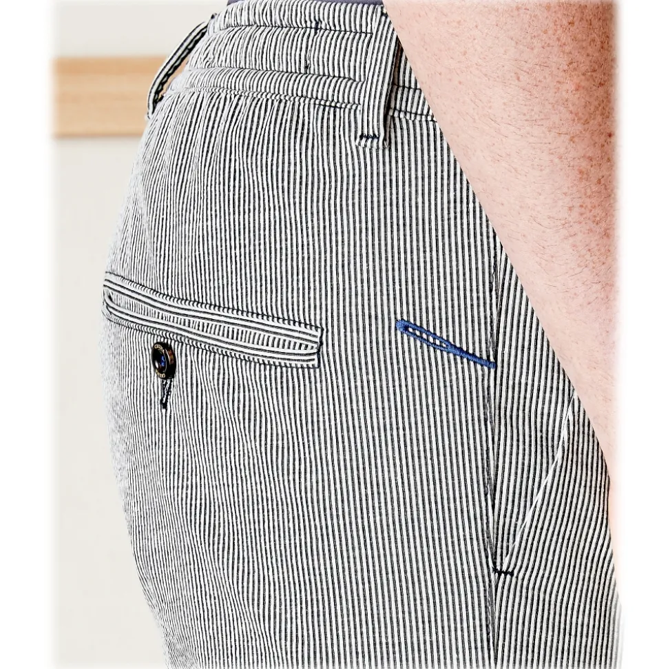 Cruna – Mitte Trousers in Linen Seersucker – 567 – Navy – Handmade in Italy – Luxury High Quality Pants