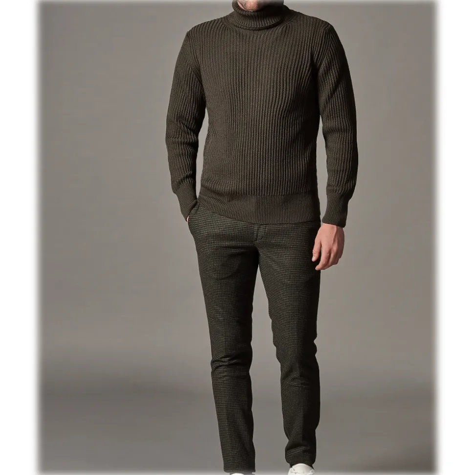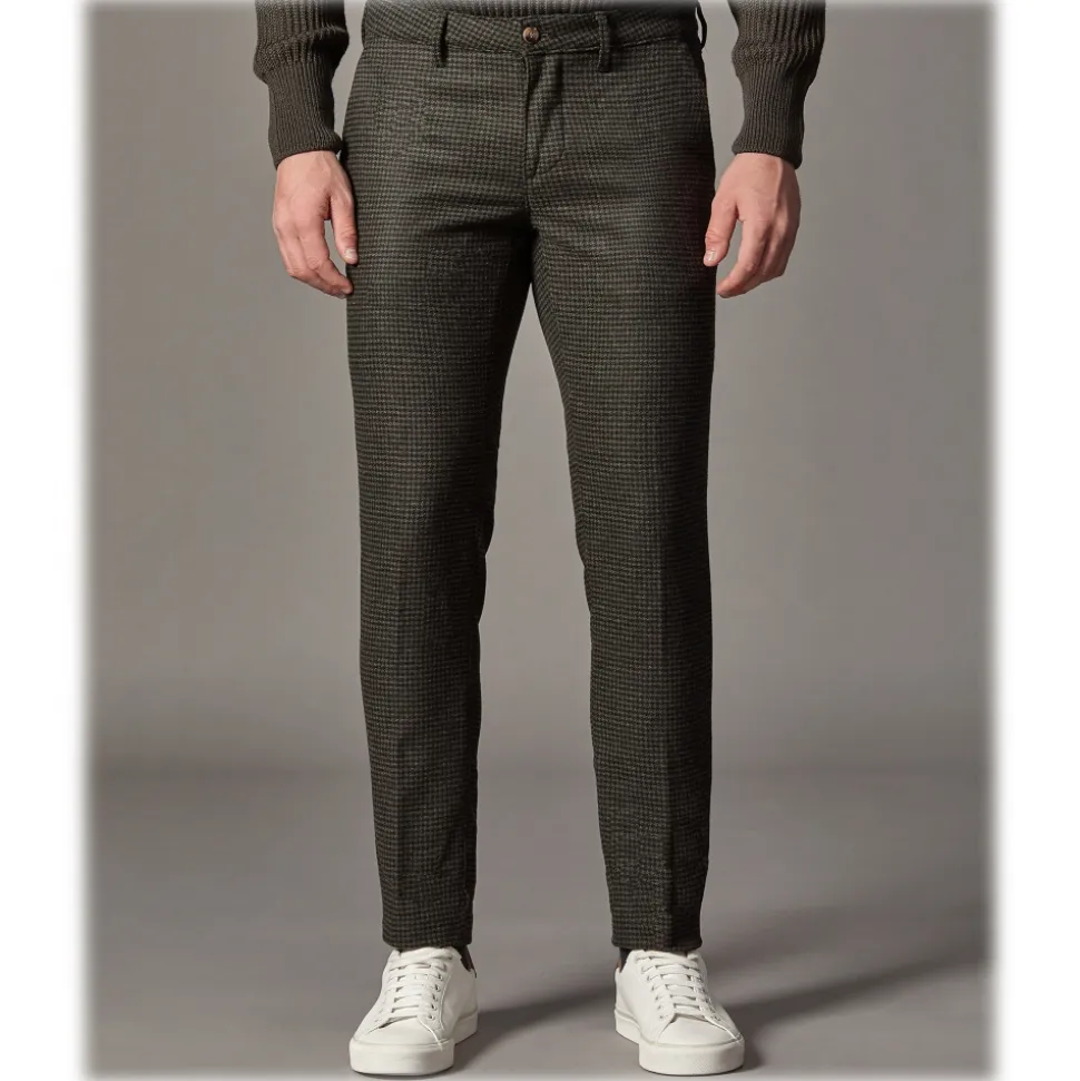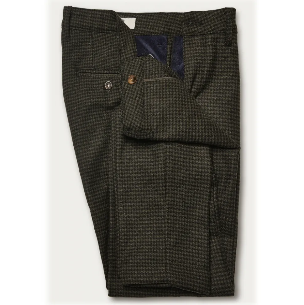 Cruna – New Town Trousers in Pied-de-Poule Wool – 482 – Forest Green – Handmade in Italy – Luxury High Quality Pants