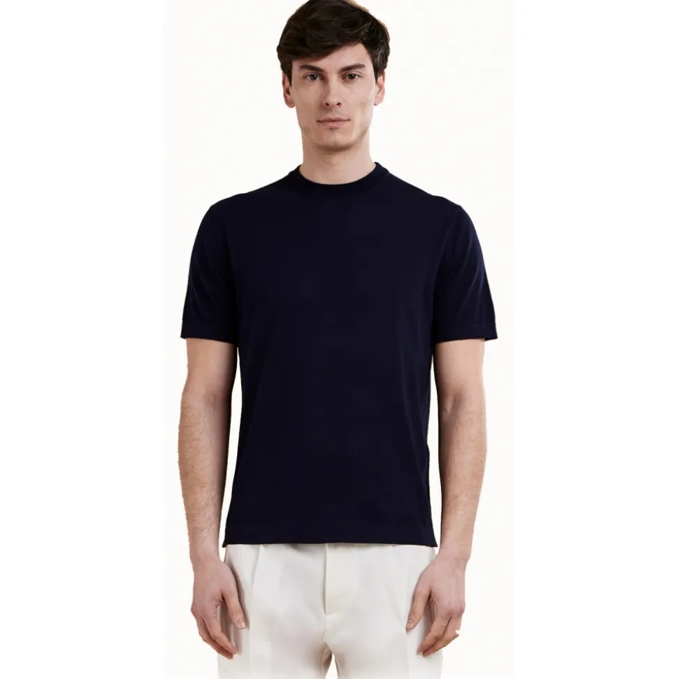 Cruna – Nizza Knitted T-Shirt – 1531 – Night Blue – Handmade in Italy – Luxury High Quality Collection