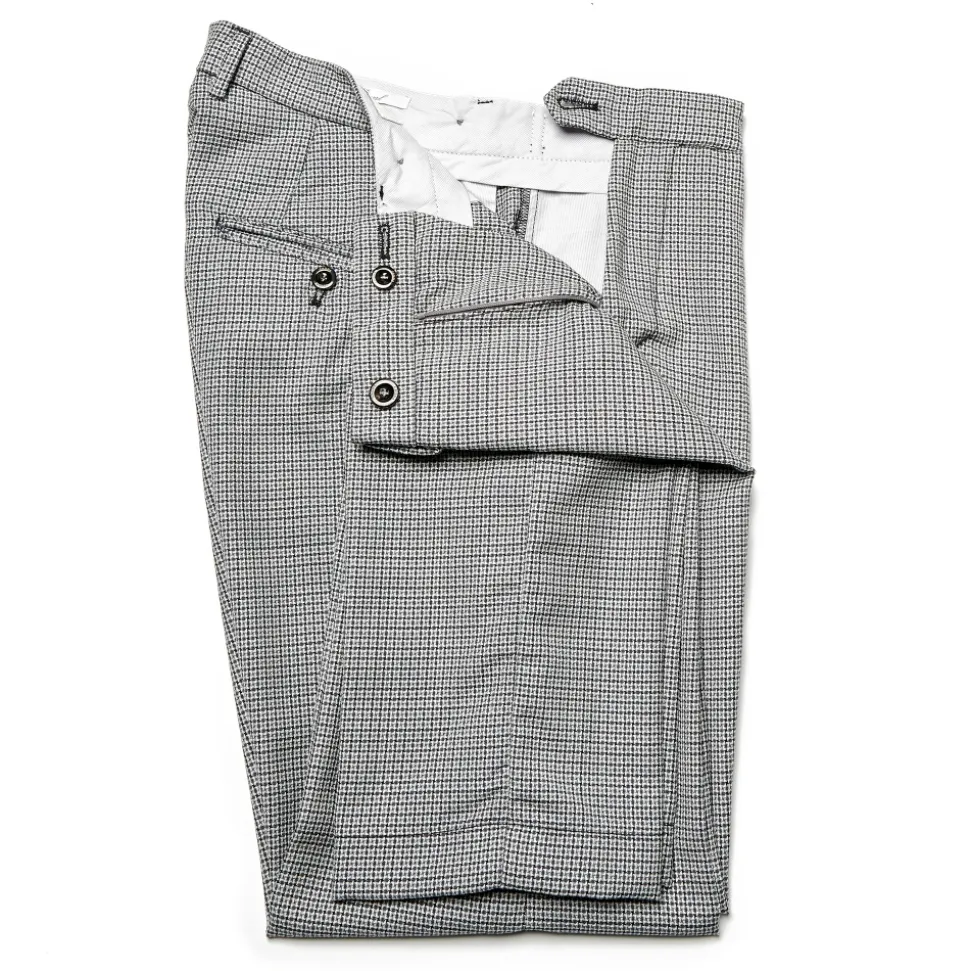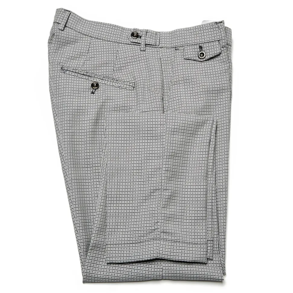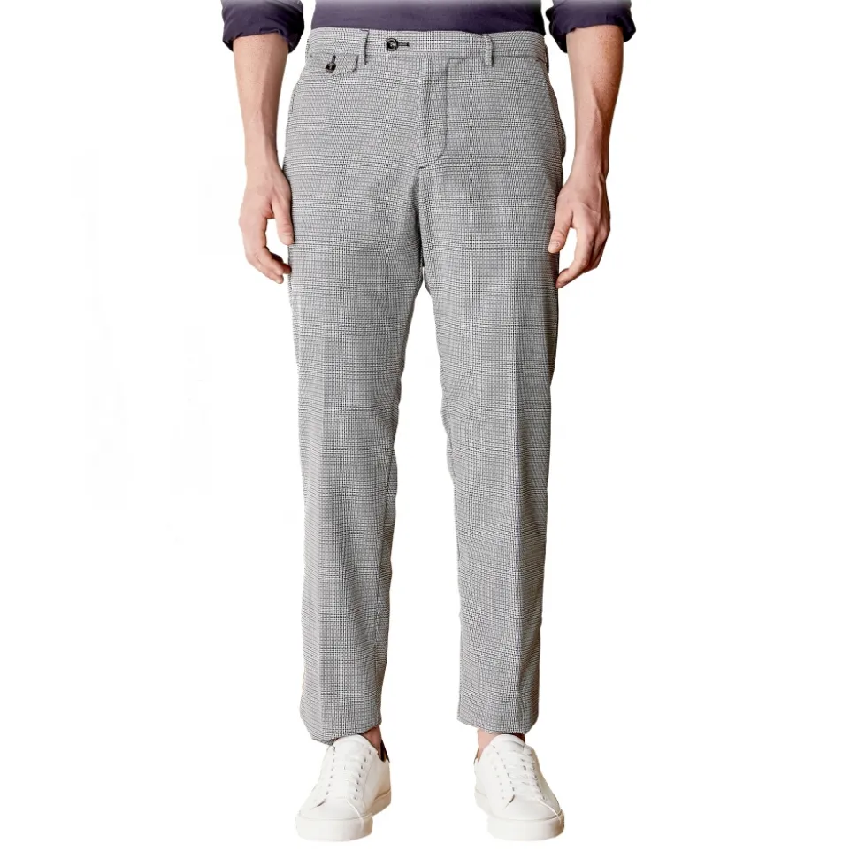 The fresh wool, a fabric with a particular thermoregulatory property and a clean and elegant appearance, is enhanced by designs that give movement and originality. The Smooth fit with the 18 cm trouser-legs bottom and its soft lines perfectly suits the most recent trends and is enriched with a sartorial taste and strengthened by refined details, like the pinces, the side adjusters and the closure with tab.