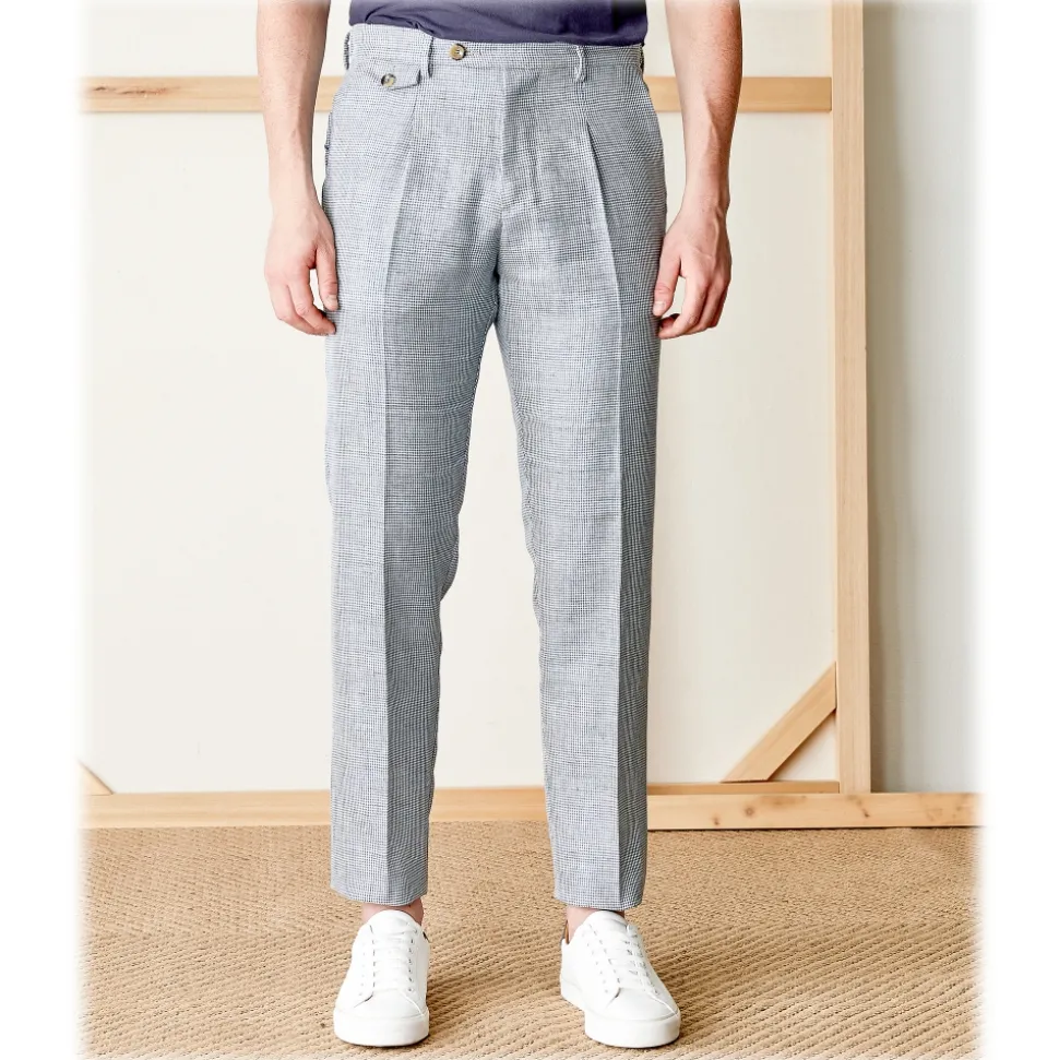 Cruna – Raval Trousers in Wool and Linen – 557 – Avio – Handmade in Italy – Luxury High Quality Pants