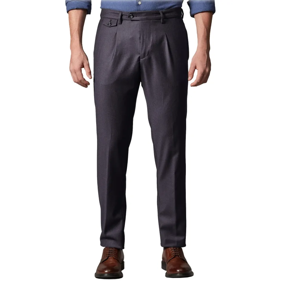 The virgin wool flannel trousers, with its soft and silky hand, is the prince of the winter season. The Smooth fit with the 18 cm trouser-legs bottom and its soft lines perfectly suits the most recent trends and is enriched with a sartorial taste and strengthened by refined details, like the pinces, the side adjusters and the closure with tab.
