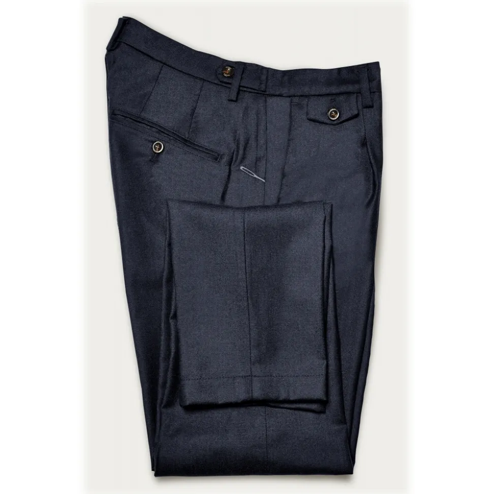 Cruna – Raval Trousers in Wool Flannel – 628 – Night Blue – Handmade in Italy – Luxury High Quality Pants