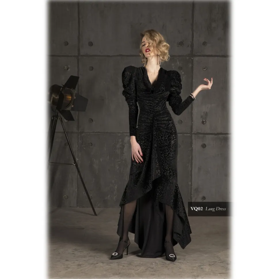 Danilo Forestieri – Short Crossed Velvet Dress with Lace – Black – Dress – Haute Couture Made in Italy – Luxury Exclusive Collection