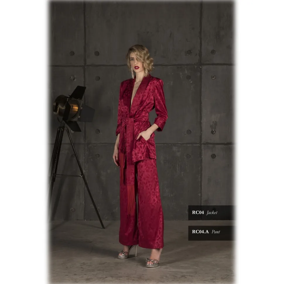 Danilo Forestieri – Maxi Jacket with Belt and Fringes – Cherry Red – Jacket – Haute Couture Made in Italy – Luxury Exclusive Collection