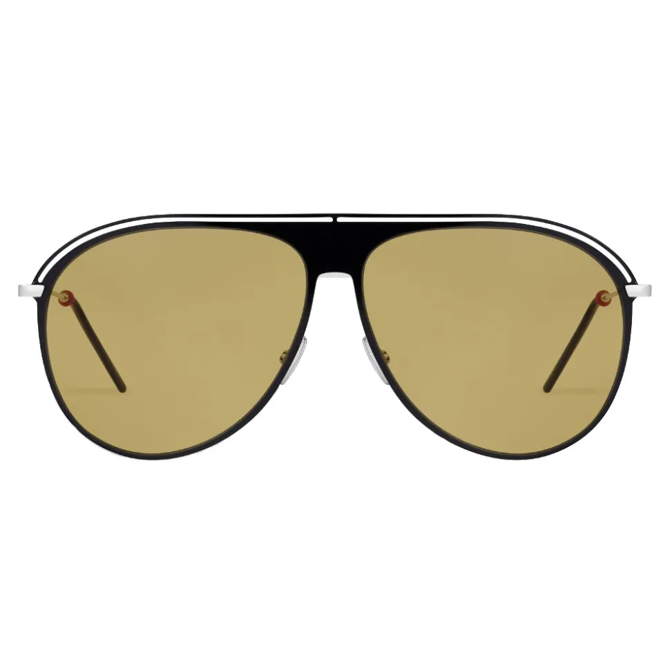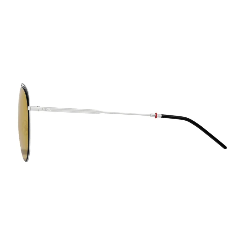 “Dior0217S” sunglasses in ultra-thin aviator shape in black and silver lacquered metal. On the upper part of the frame there is the emblematic perforated scar. The thin metal temples are embellished with a delicate red detail that makes this model extremely refined.