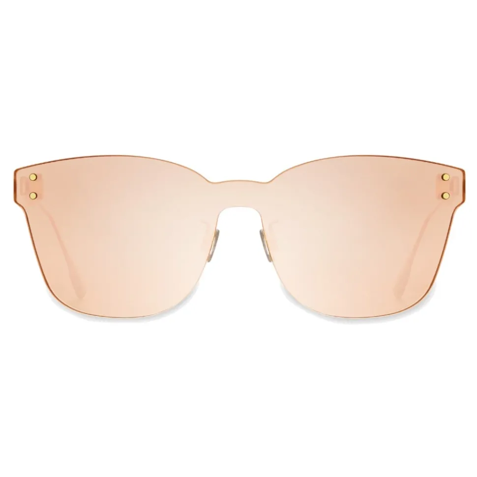 Emblematic accessory of the Winter 2018 fashion show, DiorColorQuake2 colored glasses express a defined style, an inimitable look. With their rectangular shape, they stand out for their essential and feminine silhouette: a monochromatic pink gold mask combined with thin gilded metal temples.