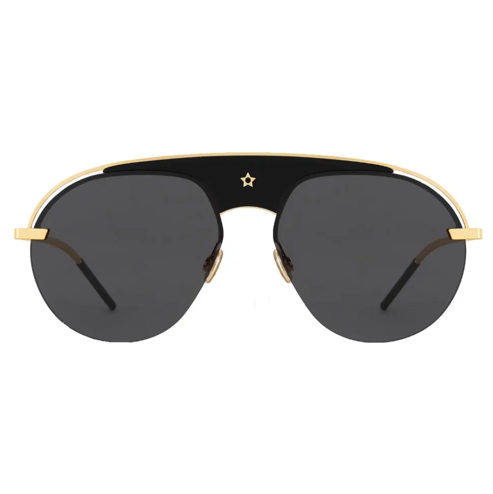 The Dio(r)evolution goggles of the Summer 2017 fashion show reinterpret the pilot shape. The golden metal frame is delicately perforated and reveals a black acetate insert. The metallic star applied, like a poster, recalls one of the iconic themes of the fashion show and pays tribute to the superstitious side of Monsieur Dior.