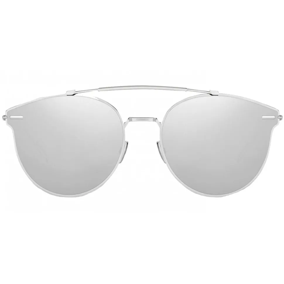 “DiorPressure” sunglasses with rounded shape. The ultra-thin silver metal frame is embellished with a double graphic bridge. The thin perforated temples reveal the emblematic scar of Dior Homme.