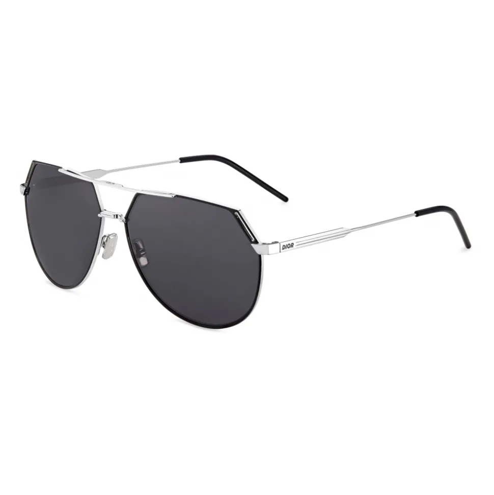 DiorRiding sunglasses are characterized by their pilot sportswear-style, contrasted with a touch of black lacquer. The openwork details on the silver metal frame hint at the iconic Dior Men cut. The ‘Dior’ logo on the temples gives these sunglasses a stylish and contemporary look.