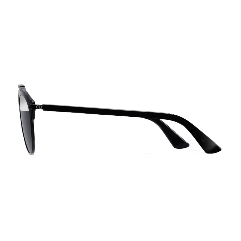 With their revisited pantos shape, the DiorSoReal sunglasses from the Summer 2014 fashion show harmoniously combine structured lines and couture spirit. The frame, very light, is in black acetate and details in black metal.