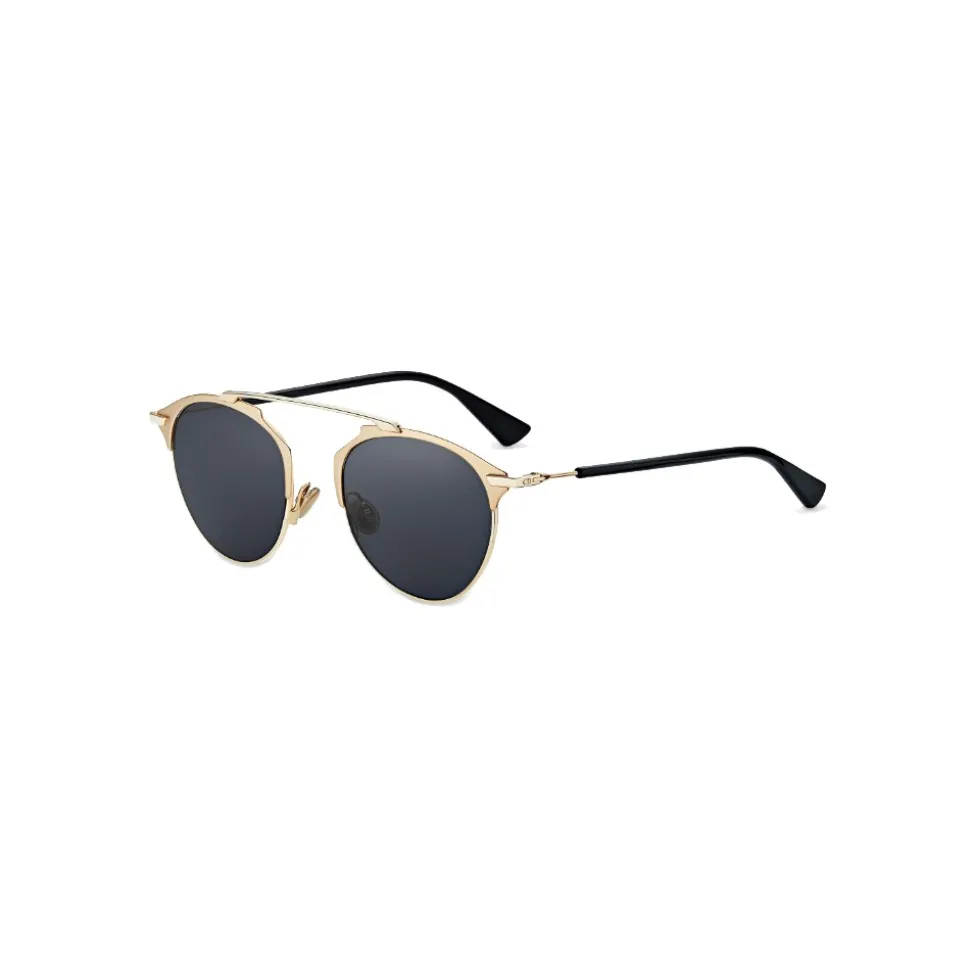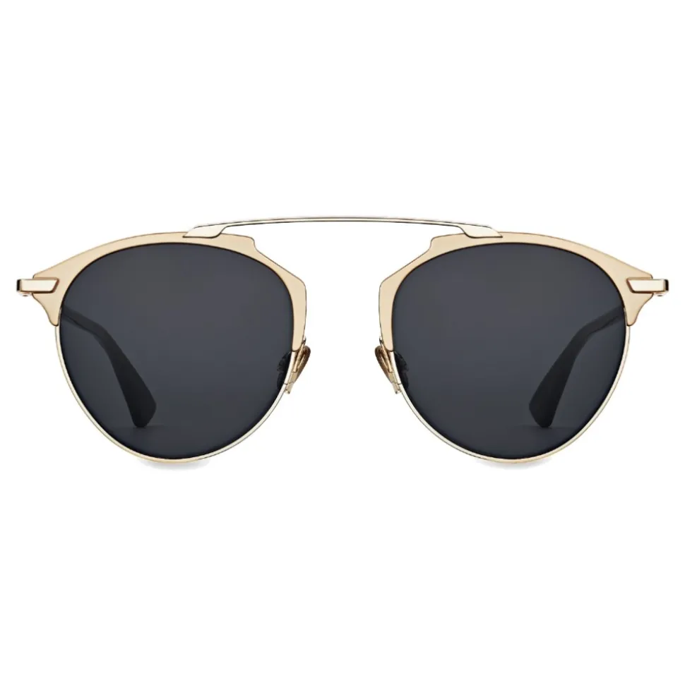 The DiorSoRealM sunglasses revisit the shape of the iconic DiorSoReal model. Flat and ultra-thin, the golden metal emphasizes the exclusive architectural design of the model, accentuated by the play of contrasts between glossy and opaque. The temples are in black acetate and golden metal.