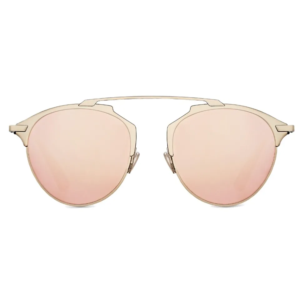 The DiorSoRealM sunglasses revisit the shape of the iconic DiorSoReal model. Flat and ultra-thin, the golden metal emphasizes the exclusive architectural design of the model. The temples are in turtle acetate and golden metal.
