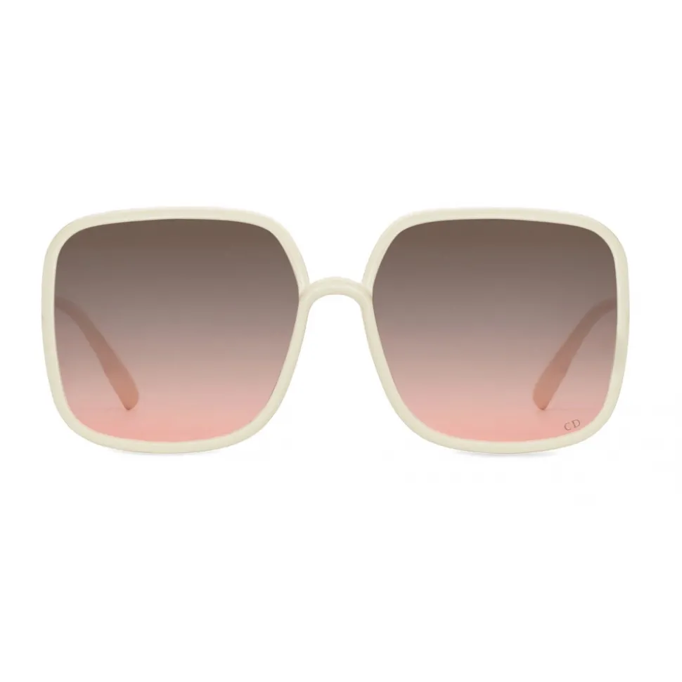 The DiorSoStellaire1 sunglasses have an oversized square shape and are an acetate interpretation of the iconic DiorStellaire1. The ivory frame emphasizes the brown shaded lenses, while a gold-tone metal insert on the temples adds a sophisticated, feminine touch. Color sold exclusively on dior.com and in Dior boutiques.