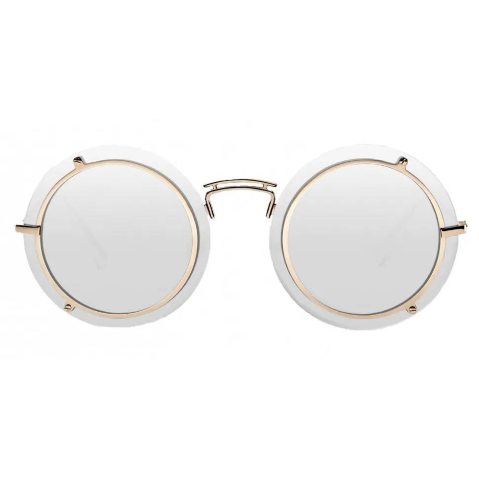 With their round shape, the DiorSurrealist glasses recall the inspiration of the Fall 2018 collection. The gold metal frame is applied to the silver mirrored lenses, while the perforated metal bridge and the visible screws accentuate the graphic style of the model.
